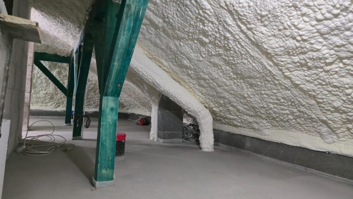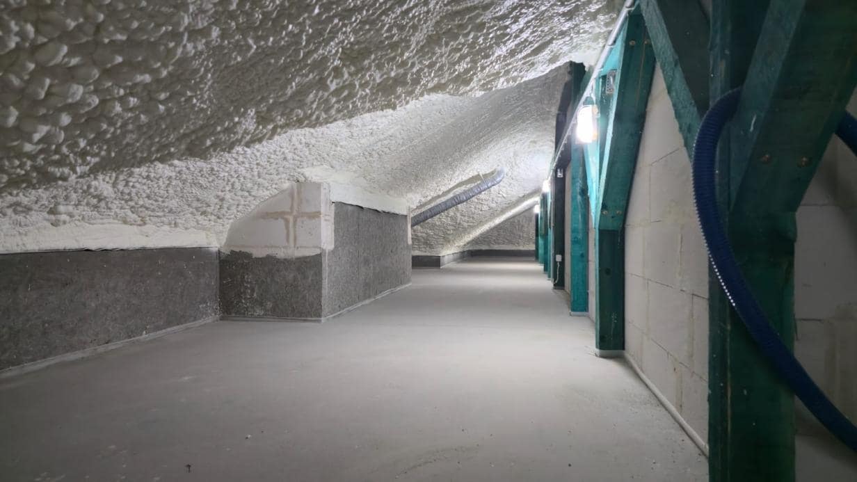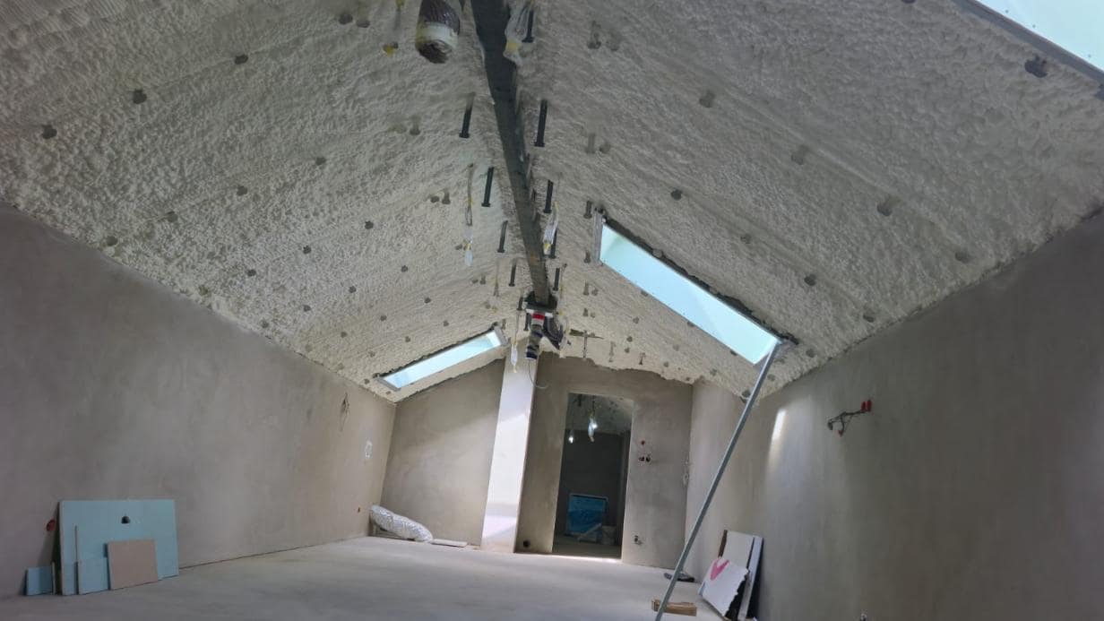 Po wstępnej inspekcji poddasza nasi specjaliści przygotowali powierzchnię do aplikacji piany. Proces natrysku odbył się przy pomocy nowoczesnego sprzętu GRACO, który pozwala na precyzyjne i równomierne nałożenie piany. Prace rozpoczęły się rano i zostały zakończone tego samego dnia, pozostawiając czystą i gotową do dalszych prac przestrzeń.