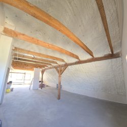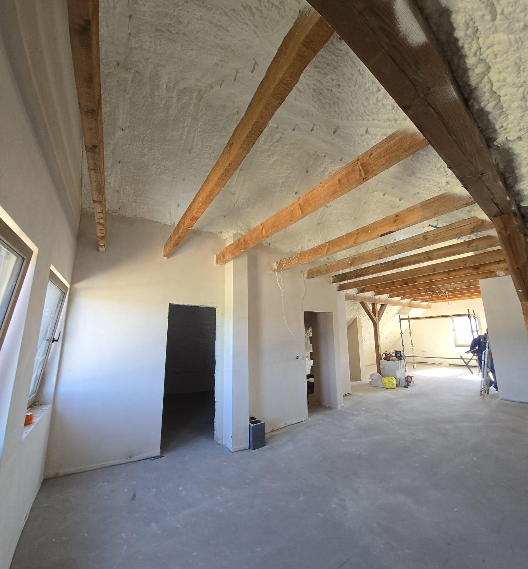 Dzięki zastosowaniu piany PUR poddasze w domu jednorodzinnym w Luzinie zyskało doskonałą izolację cieplną i akustyczną. Inwestor może teraz korzystać z przestrzeni bez obaw o wysokie rachunki za ogrzewanie.